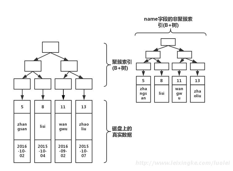 非聚簇索引:不是聚簇索引,就是非聚簇索引(认真脸)。