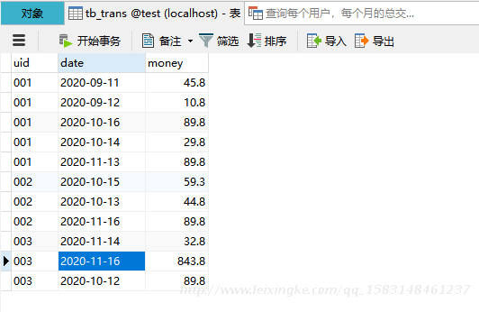 #SQL 两个表,客户表tb_consumer(客户ID,uid,名字 name),账单交易表tb_trans (客户ID uid, 交易时间 date,交易额 money)