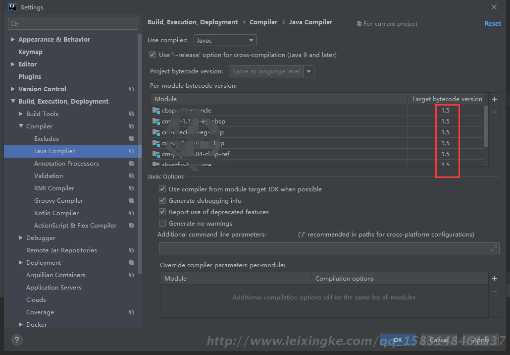 File | Settings | Build, Execution, Deployment | Compiler | Java Compiler