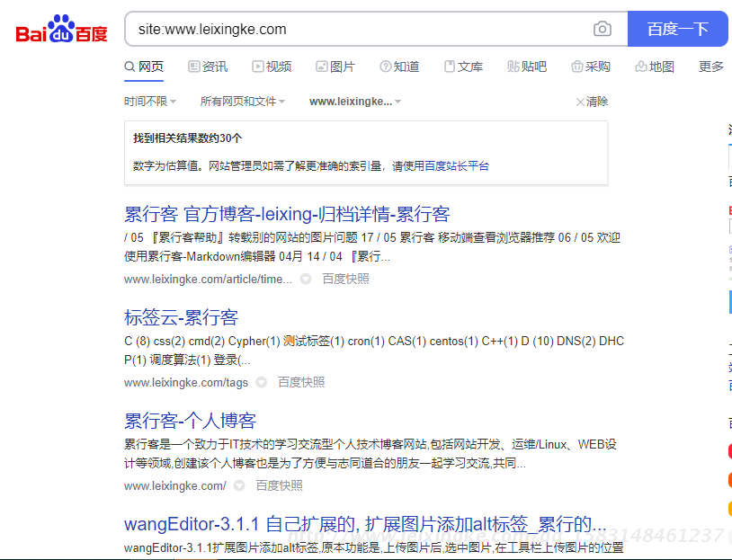 百度站长平台上索引显示依旧是5,用site命令查了一下31条,再查又变成30了,还有的site查不出来的,但是搜索有时候能看到。