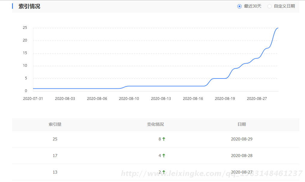 百度站长平台上索引显示依旧是1,用site命令查了一下31条。