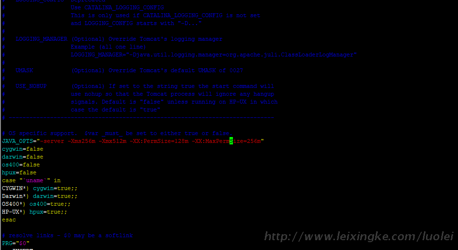 JAVA_OPTS="-server -Xms256m -Xmx512m -XX:PermSize=128m -XX:MaxPermSize=256m"cygwin=false