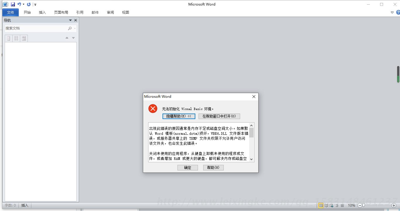 结果“无法初始化Visual Basic环境” 估计是冲突了。